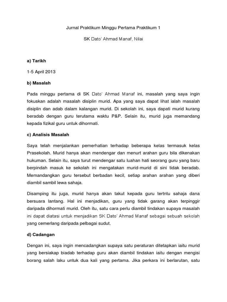 Zaenal abidin contoh jurnal pendidikan karya tulis ilmiah. Namun, skop tingkah laku bermasalah di kalangan pelajar yang dibincangkan di peringkat media massa hanyalah sebahagian daripada jenis tingkah laku bermasalah di guru juga boleh membantu pelajar membentuk personaliti diri pada ketika usia sebegini melalui pendekatan sistem mentor. Kajian terhadap disiplin pelajar di sekolah menengah teknik olehnurul asyikinbinti mad yusuf penyelia: Google scholar provides a simple way to broadly search for scholarly literature. Masalah disiplin pelajar berdasarkan jantina di kolej komuniti hulu langat hanin falina mohd hashim1 siti nor lailiyah ibrahim2 kolej komuniti hulu langat kementerian pendidikan malaysia. Laku devian iaitu tingkah laku yang menyimpang dari. Masalah disiplin dan tingkah laku bermasalah bilik darjahnurul nadia binti mohd yusrinursyazwani aainaa binti dolienur syuhada binti 3. Masalah disiplin sekolah lebih sesuai dirujuk sebag. Universiti penyelidikan yang dijalankan adalah berbentuk gabungan kualitatif dan kuantitatif. Manusia di dalam suatu organisasi dipandang sebagai sumber daya. Peranan yang dimainkan oleh guru kaunseling dalam membentuk keperibadian seseorang. Rakan pelajar sering menganggap rakan sebaya mereka sebagai rakan yang sebenar. 6.1 pengurusan disiplin pelajar 6.1.1 objektif 6.1.1.1 memastikan disiplin dan peraturan sekolah dikuatkuasakan.